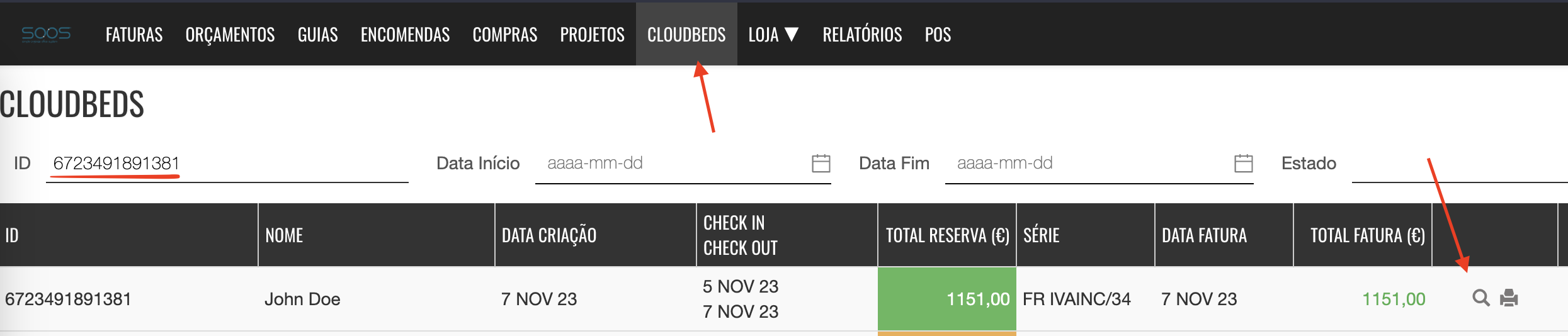 Visite o documento que criou ao aceder ao menu Cloudbeds e procurar pelo ID da reserva. Abra o documento.