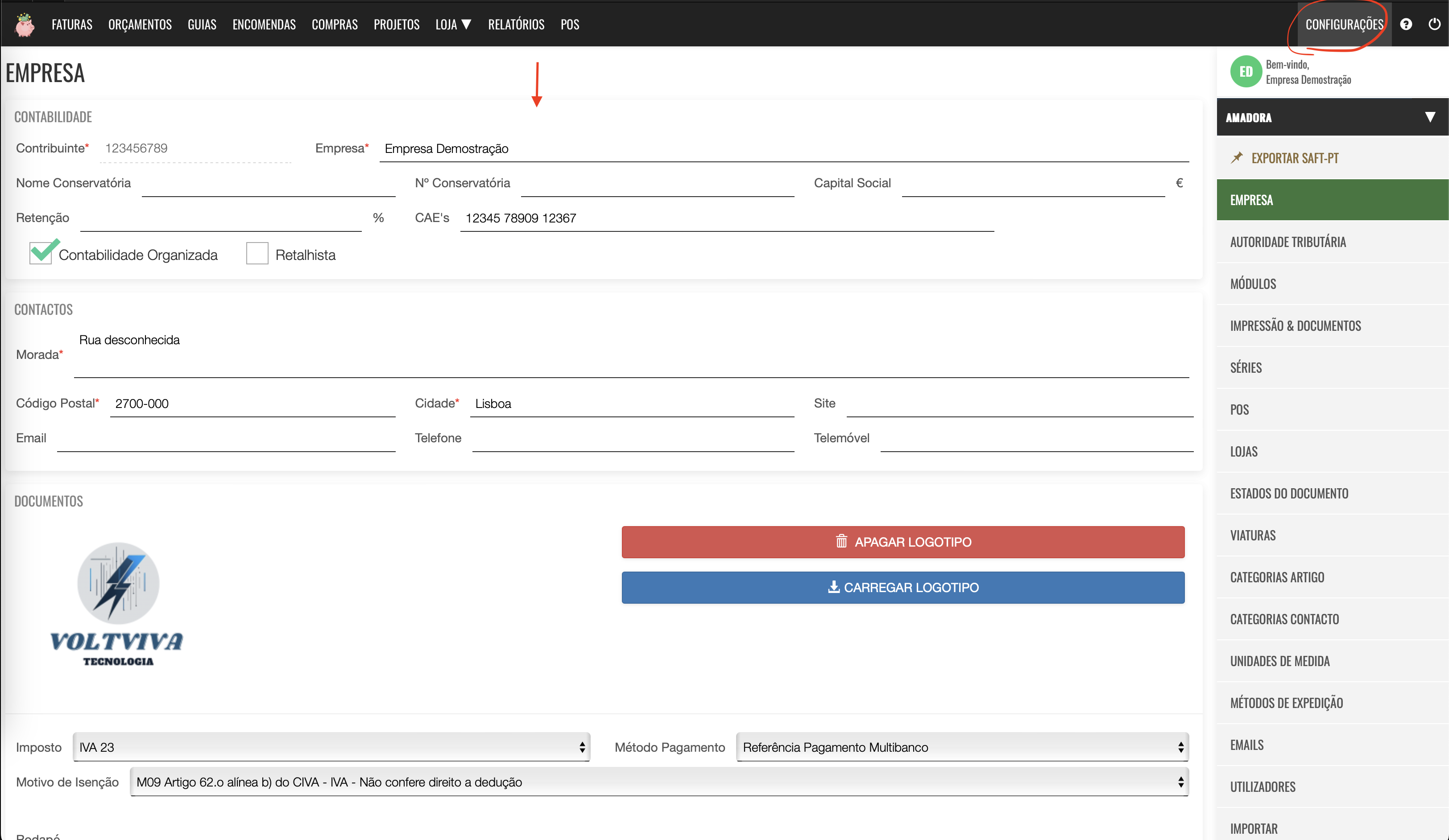 Você deve configurar todas as informações relacionadas ao seu negócio. O último passo antes de gerar documentos é registrar uma série para a criação de documentos. Você pode encontrar orientações sobre este passo aqui.